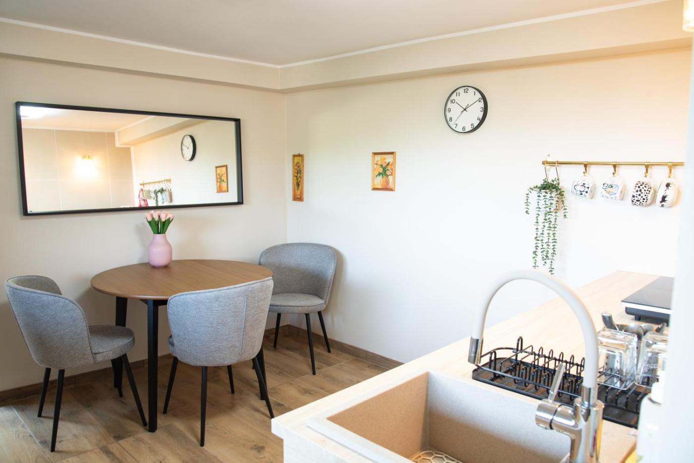Apartament z 1 sypialnią. Boasting a private entrance, this apartment also features 1 separate bedroom, 1 bathroom with a walk-in shower, a kitchen and a dining area. The well-fitted kitchen has a stovetop, a refrigerator and kitchenware. The apartment features a washing machine, a tea and coffee maker, a wardrobe, a flat-screen TV, as well as garden views. The unit has 1 bed. Apartament - 3 osobowy. Powierzchnia pokoju ok.: 45 mkw.