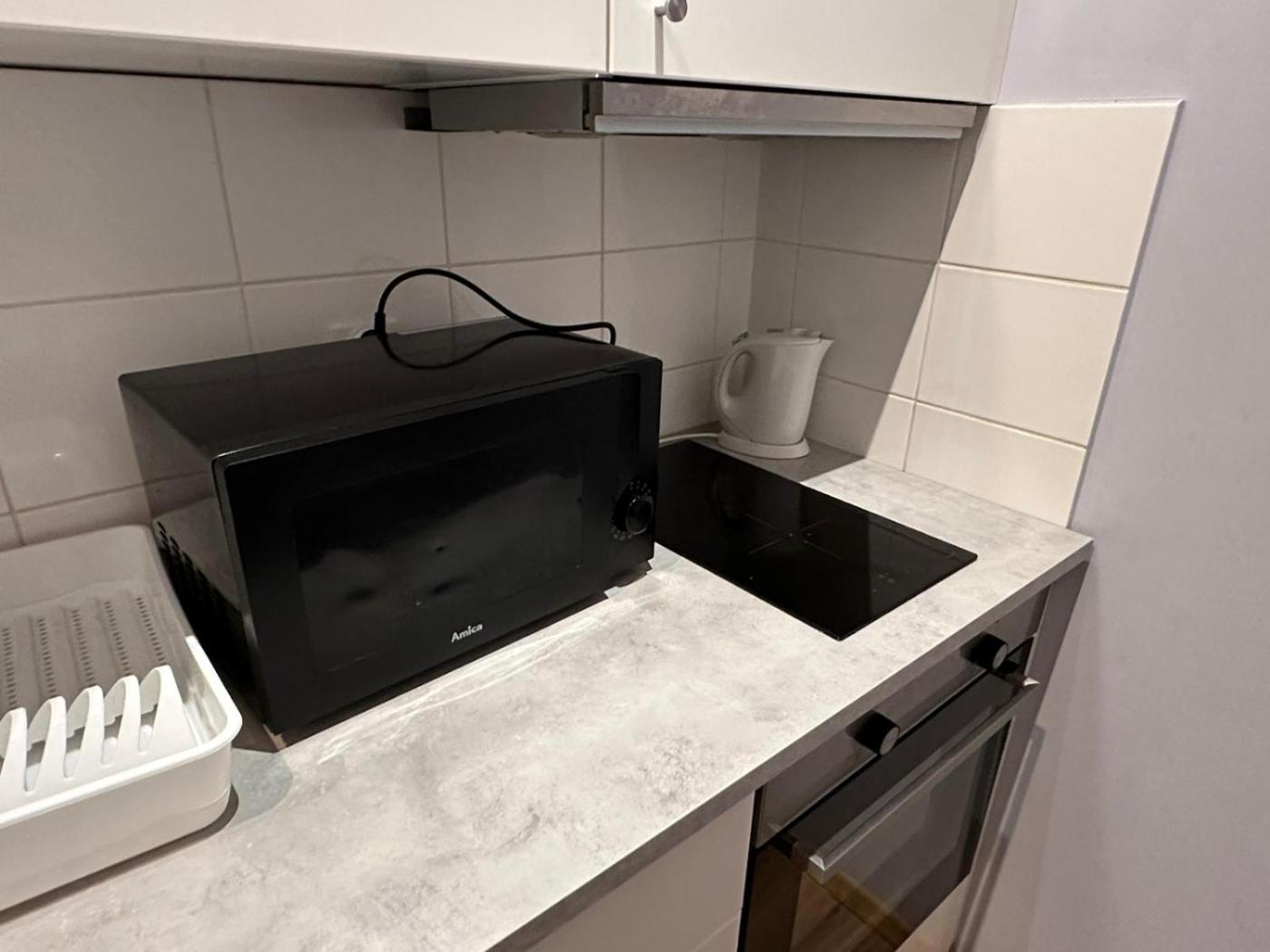 Wyposażenie obejmuje także lodówkę, mikrofalówkę i czajnik.
